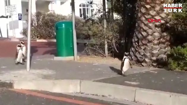 Koronavirüs nedeniyle sosyal izolasyon uygulanan, Güney Afrika’nın başkenti Cape Town’da bulunan Simons Town’da, insanların ve araçların azalmasıyla beraber penguenler sokaklara döküldü.