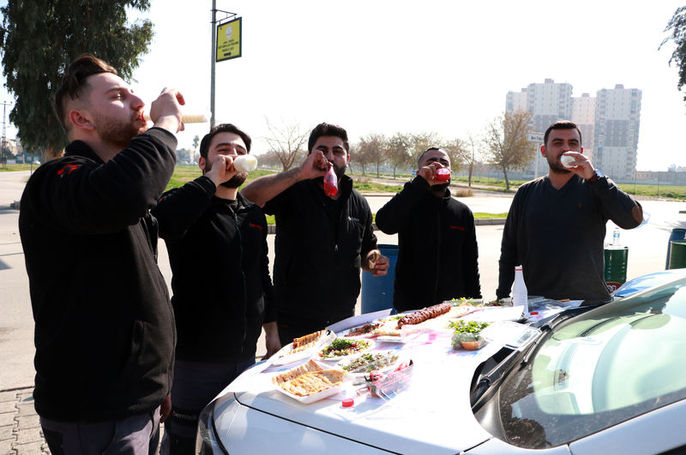 Öğle yemeğini dışarıda yemek için kebapçıya gelen ve otomobillerinin kaputunu masa olarak kullanan bir grup iş arkadaşı ise görenleri şaşırttı. Kaputun üzerine çeşit çeşit salata dizen gençler, kebap dürümünü bu şekilde yedi. İş arkadaşlarıyla öğle yemeklerini genelde otomobil içinde ya da kaputu masa olarak kullanıp yediklerini kaydeden Gürkan Güngör, Her gün senaryo değişiyor. Bir gün kaputun üzerinde yiyoruz, diğer gün parktaki bankın üzerinde. Bir an önce restoranlar açılsa da bu çileden kurtulsak dedi.