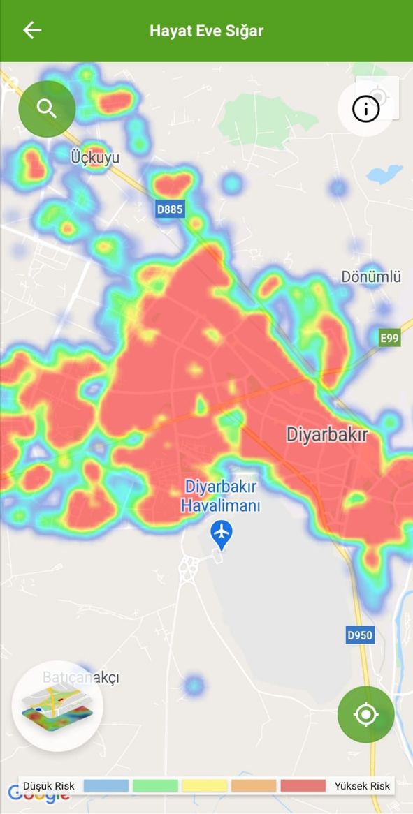 Hayat Eve Sığar uygulamasında yer alan verilere göre İstanbul, Ankara, İzmir ve Diyarbakır'daki koronavirüs haritası aşağıda yer alıyor. Diğer illeri incelemek için Hayat Eve Sığar uygulamasını mobil cihazınıza indirebilirsiniz.