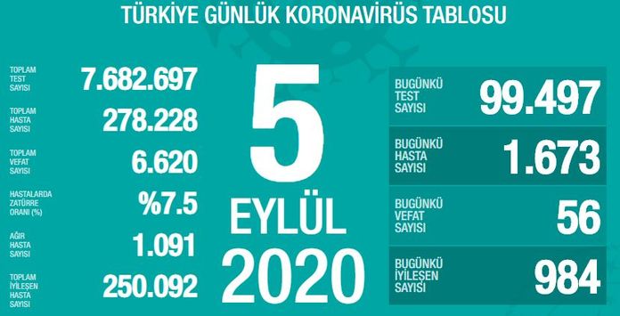 KORONAVİRÜS SON DAKİKA HABERLERİ İÇİN TIKLAYINIZ!5 EYLÜL DÜNÜN KORONAVİRÜS TABLOSU