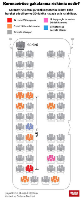 Yetkililer, insanlara diğer kişilerle aralarında 1-2 metre mesafe kalmasını öneriyor ancak araştırmacılar, otobüste yolculuk yapan bir yolcunun 4.5 metre uzakta oturan diğer yolcuyu enfekte ettiğini keşfetti. Öte yandan araştırmanın arkasındaki bilim insanları, yaptıkları araştırmanın yüz maskesi giymenin de önemini vurguladını söyledi.