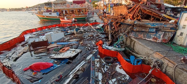 Yaklaşık 50 yıllık teknenin ilçede 'Korsan Mesut' olarak tanınan babası merhum Mesut Fırat'a ait olduğunu dile getiren Mert Fırat, "8 yıl önce tersanedeki bakımı sırasında düşüp, zarar gördü. Bakımını üstlenmeyen tersaneye dava açtık. Limanda bağlı duruyordu. Devam eden mahkeme süreci nedeniyle yıllardır bakım ve onarım yapamadık. En sonunda su alıp, battı. Teknenin dağılan parçaları için çevresine bariyer çektik. Herhangi bir kirlilik olmadan kaldırıyoruz. Baba yadigarı tekneyi mahkeme sonucu beklerken kaybettiğimiz için üzgünüm" diye konuştu.