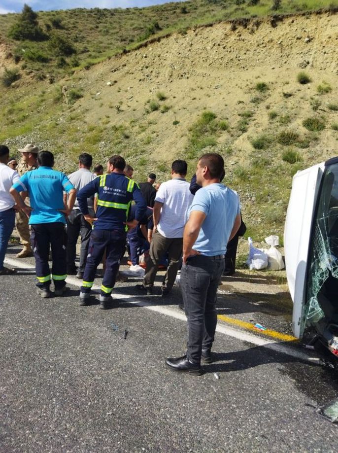 İHA'nın haberine göre olay Palu ilçesi Baltaşı köyü yolu üzerinde meydana geldi. Edinilen bilgilere göre bir yolcu minibüsü, sürücüsünün direksiyon hakimiyetini kaybetmesi sonucu takla attı.