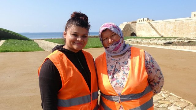 Köylü kadınlar, Seddülbahir Kalesi'nin restorasyonunda çalışıyor