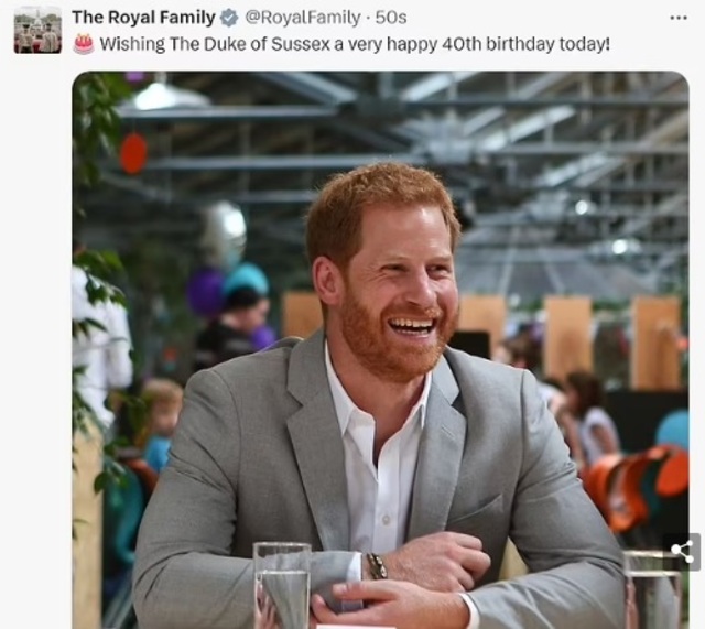 Kral ve Kraliçe'nin doğum günü pastası emojisiyle paylaştıkları mesaj şöyleydi: Sussex Dükü'ne bugün çok mutlu bir 40'ıncı doğum günü diliyoruz!