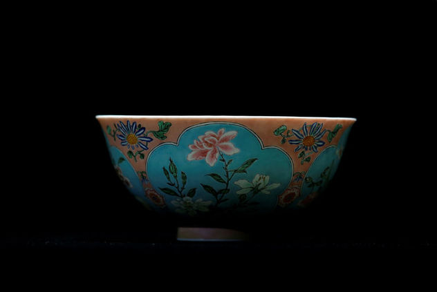 Üzerinde çeşitli çiçek desenleri bulunan parça, tipik bir Çin porseleni özelliğine sahip değil. 14.7 santimetre çapındaki kâse, üzerindeki Çin ve Batı tekniği boyamayla öne çıkıyor.