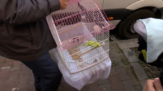 Apartmanda oturanlar can havliyle kendilerini sokağa attı, bir kişi de içeride kalan muhabbet kuşunu son anda almayı başardı.