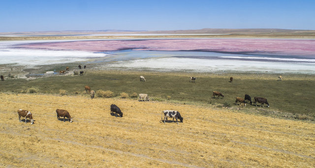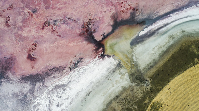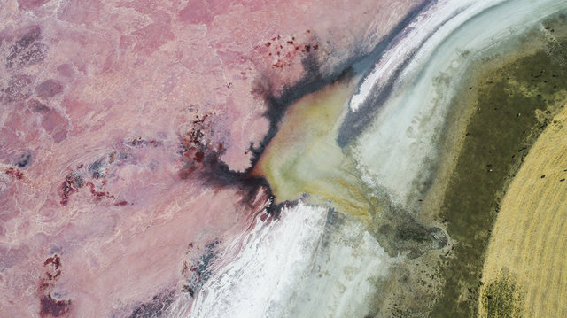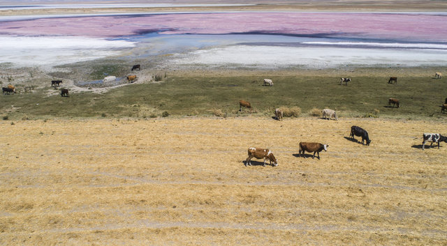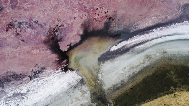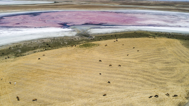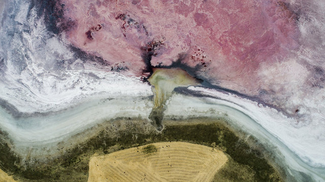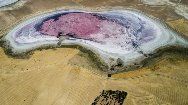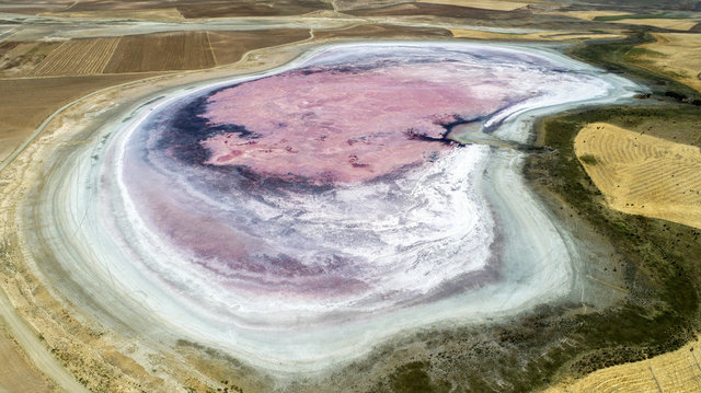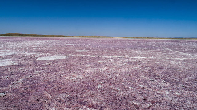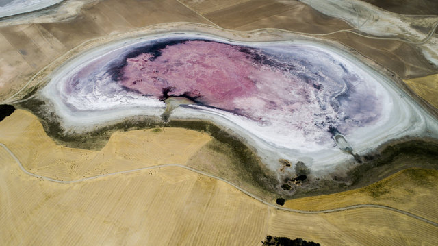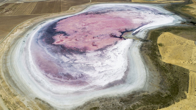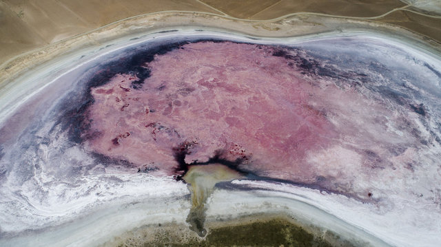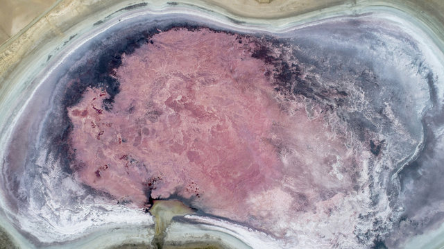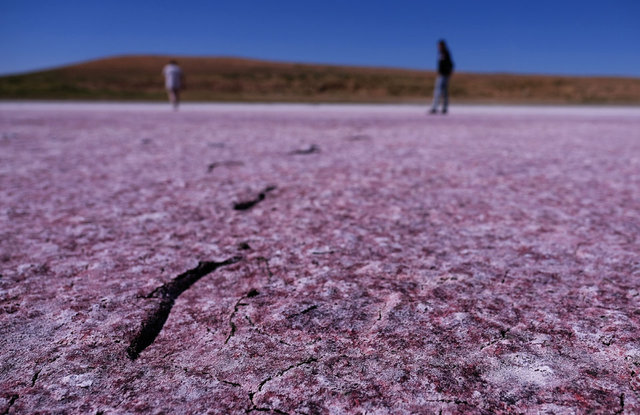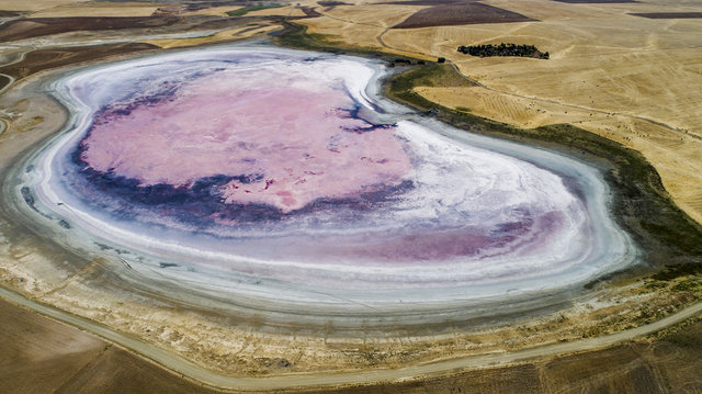 DHA'nın haberine göre suda azalmaya bağlı olarak göl, artemia salina bakterisinin patlamalarıyla pembeye büründü.