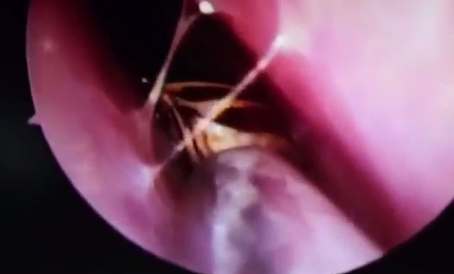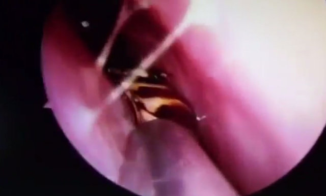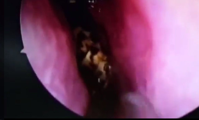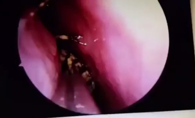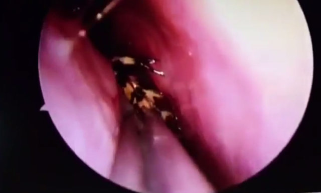 Burnu tazyikli suyla yıkandı ancak ilerleyen günlerde sorunun devam etmesi üzerine başka bir hastaneye giden talihsiz kadın, yapılan nazal endoskopi ile burnundaki kaşıntının nedenini öğrendi.