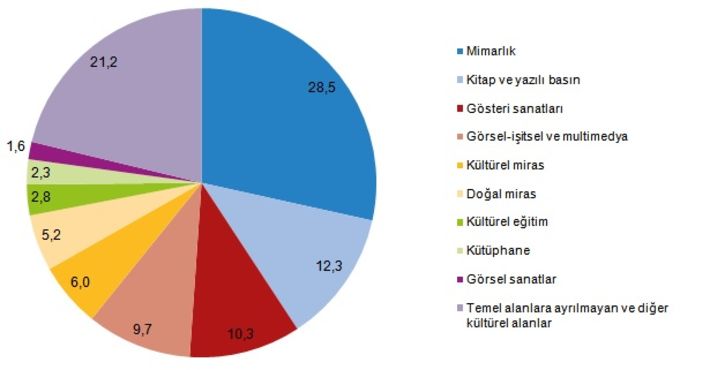 Genel devlet kültür harcamaları içinde mimarlık alanının payı yüzde 28.5 oldu.