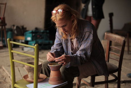 Meryem Uzerli, başrolü Ozan Güven’le paylaştığı ‘Annemin Yarası’nın çekimlerinde vaktinin büyük bölümünü atölyede geçirdi. Bosna’da bir çiftlik evinde yaşayan, elinden her iş gelen Marija karakterini canlandıran oyuncu, rolü gereği bisiklet tamir edip seramik boyadı. Oyuncunun çekimlerdeki neşeli halleri objektiflere de yansıdı.