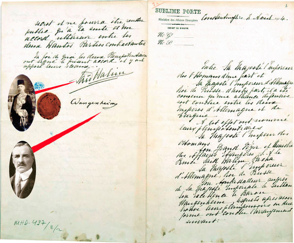 Osmanlı Devleti’nin sadrazamı, yani başbakanı Said Halim Paşa ile İstanbul’daki Alman Büyükelçisi Baron Hans Von Wangenheim tarafından Said Halim Paşa’nın Yeniköy’deki yalısında imzalanan anlaşma hakkında bugüne kadar çok şey söylenmiş, 1919’dan itibaren bazı maddeleri tam olarak olmasa bile meâlen yayınlanmış ama orijinal metin ile Alman İmparatoru İkinci Wilhelm’in Berlin’de imzalayıp gönderdiği onay belgesinin aslı ortaya çıkmamıştı.