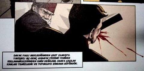 Atatürk'ü hiç böyle görmedik. Elleri bağlı, suratına yumruk yiyor, sopayla dövülüyor, yere düşünce yüzü tekmeleniyor. Dudağı patlıyor, ağzından kan geliyor. Bu sahneler bir filmden değil, kasım ayında basılan bir kitaptan ."Genç Mustafa", Atatürk'ün Harbiye ve Harp Akademisi günlerini anlatan bir çizgi-roman.
