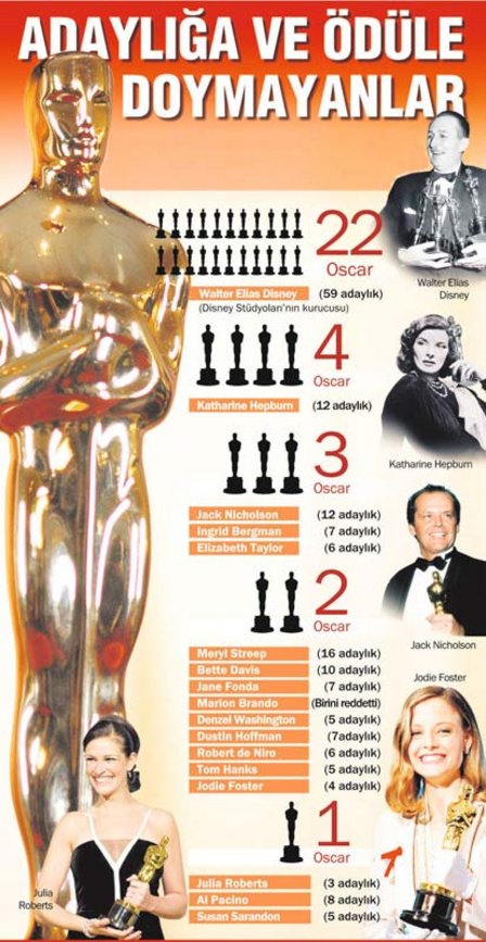 151 aday 24 dalda dağıtılan Oscar’ları almak için birbirleriyle yarışacak. Her yıl yaklaşık milyonlarca kişiyi televizyonları başına kilitleyen tören öncesinde Oscar tarihine göz atmak istedik. Bu yazı dizisinde yüzlerce oyuncunun rüyasını süslemesine rağmen altın heykeli elinin tersiyle iten ünlü yıldızları, Oscar almak için şekilden şekile, kılıktan kılığa giren Hollywood yıldızlarını, sergilediği olağanüstü performansa rağmen ödül alamayan oyuncuları okuyacaksınız.