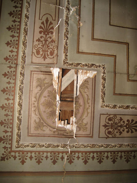 Eşsiz resimlerin yer aldığı tavanlar, çatıdan sızan yağmur sularıyla çürümüş. Merdivenler, kapılar, pencereler dökülüyor. İlk elektrik ve kalorifer sisteminin kurulduğu yer olarak bilinen haremde, kalorifer petekleri ve merdiven trabzanları pastan çürümüş halde.