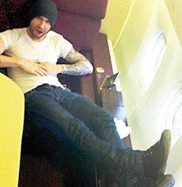 Maroon 5 grubunun aykırı solisti Adam Levine, seyahat ettiği THY uçağının First Class bölümünde cep telefonu ile çektirdiği fotoğrafı Twitter üzerinden hayranlarıyla paylaştı.