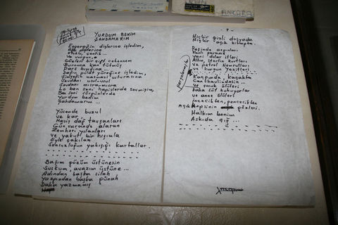 ''Utanırım, utanırım fukaralıktan, ele, güne karşı çıplak... Üşür fidelerim, harmanım kesat. Kardeşliğin, çalışmanın, beraberliğin, atom güllerinin katmer açtığı, Şairlerin, bilginlerin dünyalarında, Kalmışım bir başıma, Bir başıma ve uzak. Biliyor musun? '' dizelerini kaleme alan Ahmet Arif için düzenlenen müzedeki başka bir bölümde de gözlüğü, daktilosu ve el yazısıyla yazdığı şiir müsveddeleri gibi kişisel eşyaları sergileniyor.