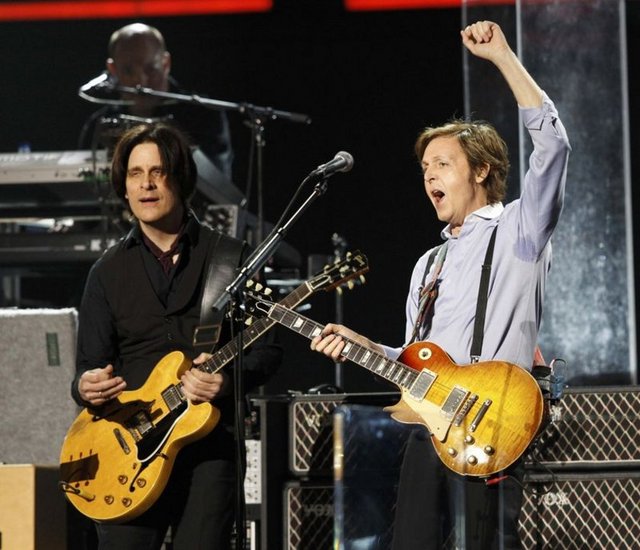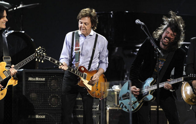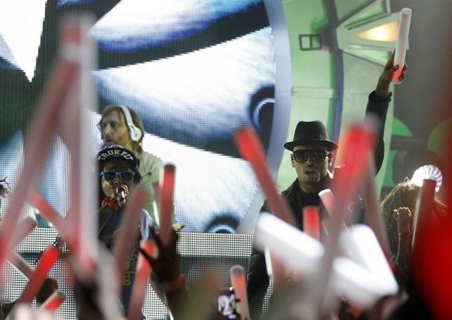 Amerikalı şarkıcı Whitney Houston'ın önceki gün hayatını kaybetmesi, geceye gölge düşürürken, gecede Chris Brown, Paul McCartney ve Bruce Springsteen sahne aldı.