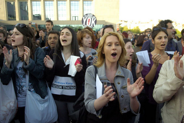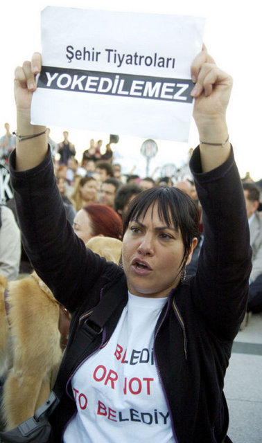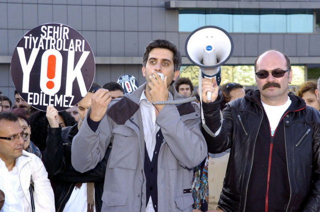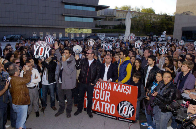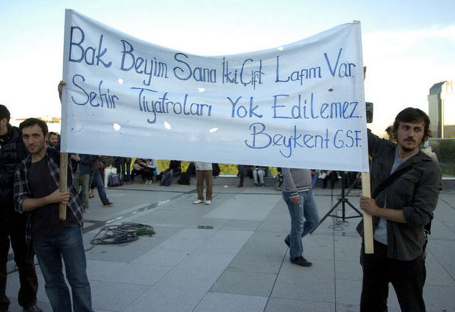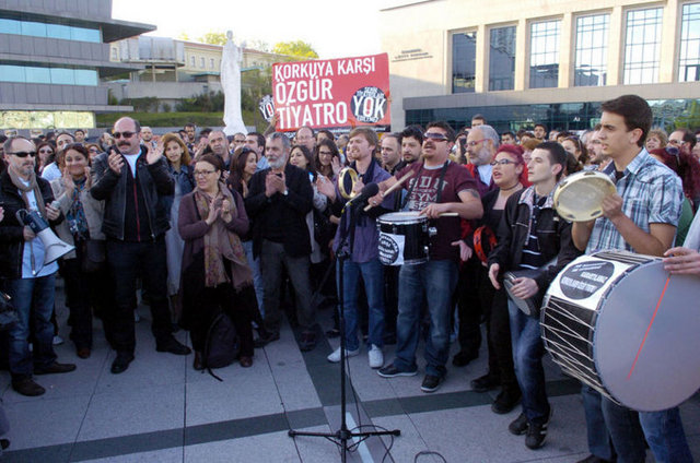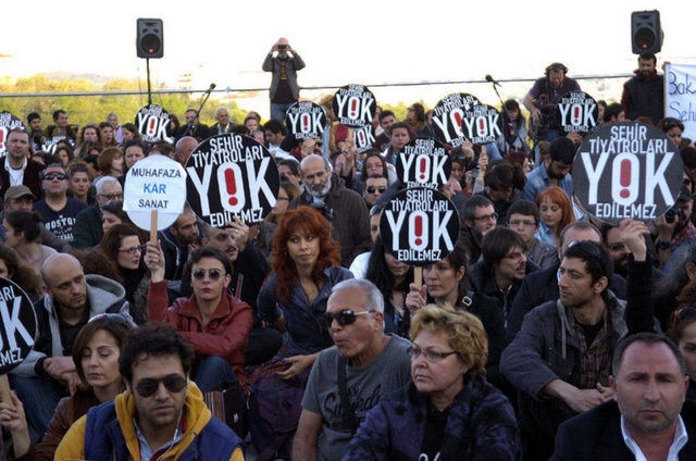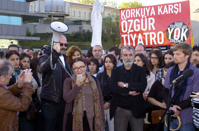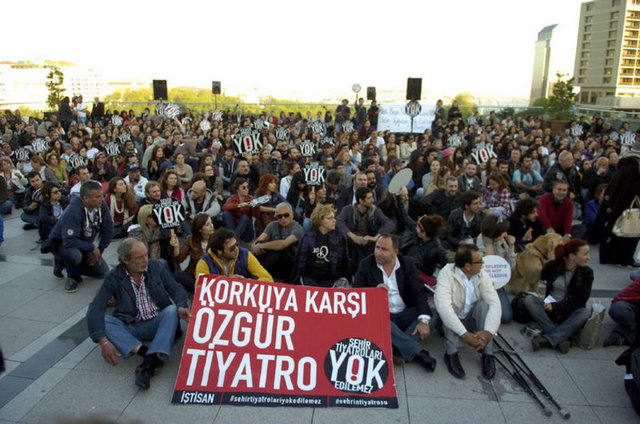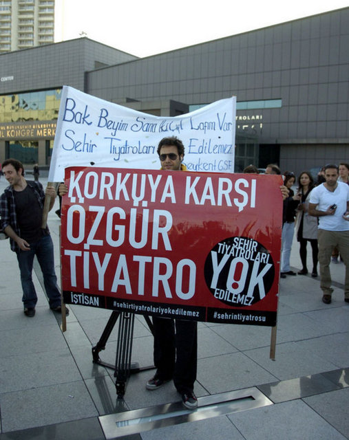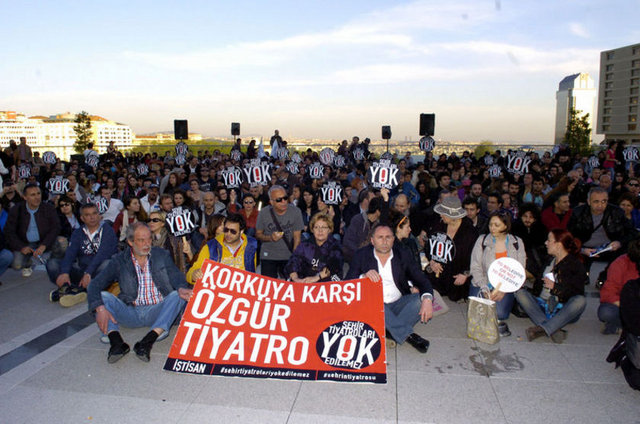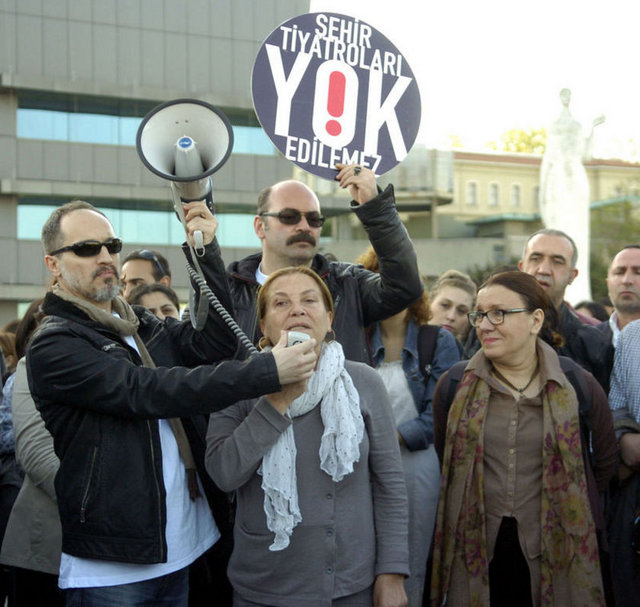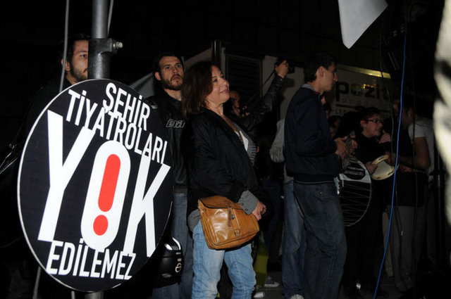 İstanbul Büyükşehir Belediyesi Meclis Komisyonu'nda İstanbul Şehir Tiyatroları yönetmeliğinde yapılan değişikliği protesto eden tiyatrocular, Harbiye'deki Muhsin Ertuğrul Sahnesi önünde toplandı. Eylemciler, 'Hükümet tiyatrodan elini çek', 'Şehir Tiyatroları yok edilemez' ve 'Özgür sanat, özgür tiyatro' dövizleri taşıyıp slogan attı. Tiyatrocuların eylemine bazı muhalefet partilerinden de destek geldi. CHP Genel Başkanı Kemal Kılıçdaroğlu ile Barış ve Demokrasi Partisi İstanbul Milletvekili Sebahat Tuncel de eyleme destek verenler arasında yer aldı.
