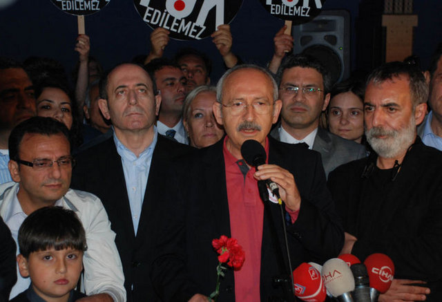 CHP Genel Başkanı Kemal Kılıçdaroğlu konuşmasında, Başbakan Recep Tayyip Erdoğan'ı hedef aldı. Kılıçdaroğlu, "Eğer bir ülkenin başbakanı çıkıp 'Siz kendinizi ne sanıyorsunuz' diye sorarsa verilecek yanıt çok basit; onlar sanatçılar, kendilerini bir şey sanmıyorlar. Ama ben Sayın Başbakana sesleniyorum; Sayın Başbakan sen kendini ne sanıyorsun!" şeklinde konuştu. Tarihin her döneminde yöneticilerin sanatçılara saygı duyduğunu savunan Kılıçdaroğlu, "Ne zamanki bir yönetici sanatçıyla kavga etmeye başlamışsa aslında kendi kuyusunu kazmıştır. Eğer siz çağdaş olacaksanız, sanata verdiğiniz önemle çağdaş olabilirsiniz. Sanatı önemsemez, garipserseniz, zaten size biz çağdaşsınız desek bile çağdaş insanlar size geri kafalı der." diye ifade etti.