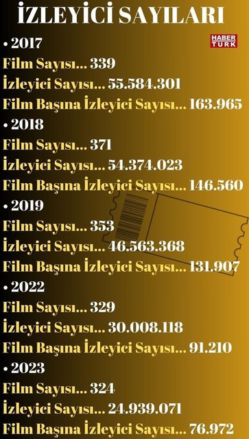 2017 ile 2023 arasında toplam izleyici açısından % 55, film başına düşen izleyici açısından % 53'lük azalma gerçekleşti.