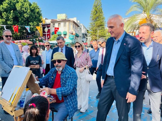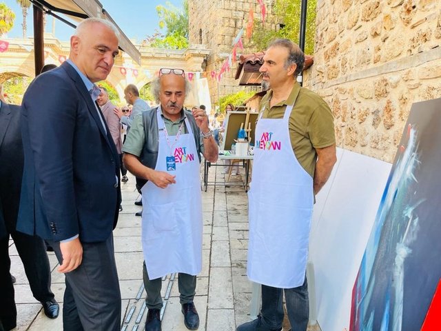 Mehmet Nuri Ersoy, Antalya Kültür Yolu Festivali çerçevesinde sergi açan ressamlarla sohbet etti.