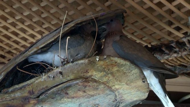 Müze kurucusu Kenan Balcı ise 2 yavrusu bulunan kuşu rahatsız etmemek için yuvayı bozmadı. Kumruların bulunduğu yere su ve karides balığı bıraktı.
