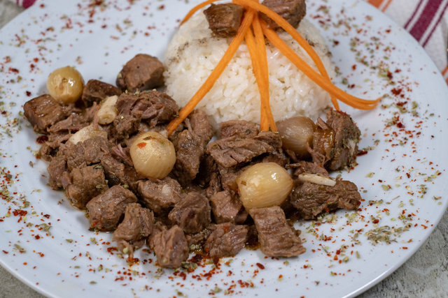 Biraz demlendikten sonra etinizi isterseniz pilavla birlikte servis edebilirsiniz. Afiyet olsun!