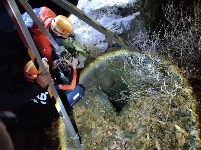 Karaman'da define bulmak için girdikleri sarnıçta mahsur kalan 3 kişi, ekiplerin çalışmasıyla 4 saatte kurtarıldı