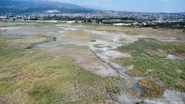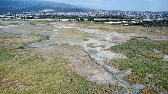 Kayıtlı 302 kuş türüne ev sahipliği yapan Mileyha Kuş Cenneti'nde ortaya çıkan kötü görüntü, dron kamerasıyla görüntülendi.