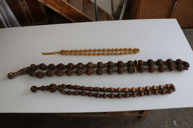 AA'nın haberine göre daha sonra ceviz ağacından tek parça halinde 185 santimetre uzunluğunda tespih yapan Maden, tek parça ağaçtan Kur'an-ı Kerim dolabı ile bir tespih daha üretti.