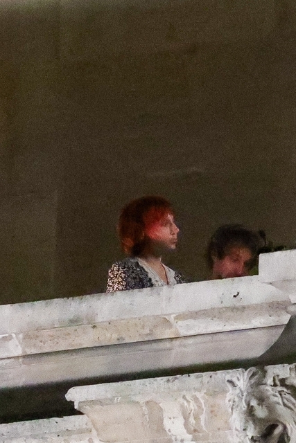 Lady Gaga, kısa kızıl saçlarıyla müzenin balkonunda görüntülendi.