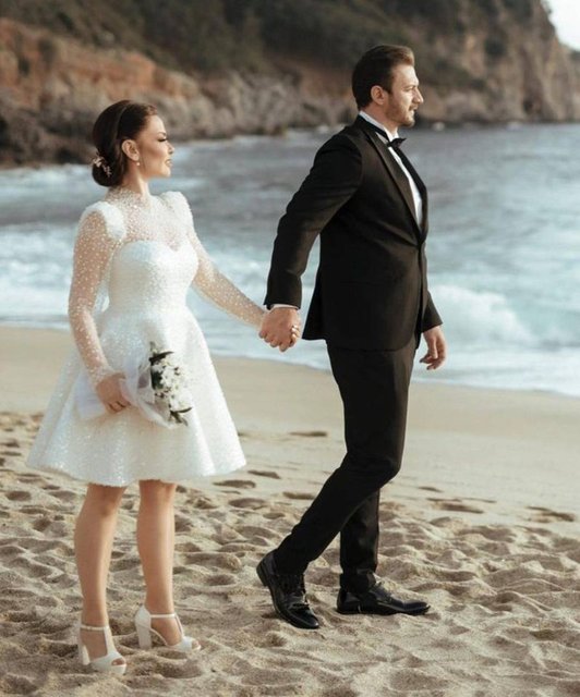 Mehdi Karimi ile sahilde gelinlik ve damatlıkla poz veren Lara, eşiyle çekilen fotoğraflarını da sosyal medya hesabından yayınladı.