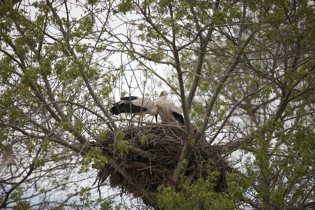 Samsun'un Kızılırmak Deltası Kuş Cenneti'ndeki 'Leylek Ormanı', baharın gelmesiyle canlandı. Kış döneminde deforme olan yuvalarını gagalarında taşıdıkları dal parçalarıyla onaran leylekler, kuluçkaya yatıp yeni yavruları için hazırlanıyor