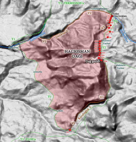 Antalya'nın Döşemealtı ilçesindeki Termessos Antik Kenti'nden yaklaşık 2 bin 300 yıl önce Muğla'nın Oinoanda yöresine göç eden Termessosluların, neredeyse talan ederek, kullandıkları antik Masa Dağı'nın yeri belirlendi. Göçmen Termessoslular ve Likyalılar arasında sınır çatışmalarına yol açtığı için Kos'ta açılan davaya konu olan antik Masa Dağı'nın, bugünkü Hacıosman Dağı olduğu belirlendi