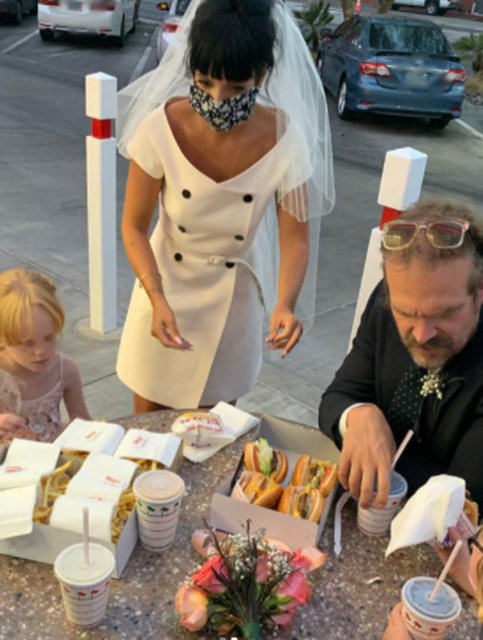 İngiliz şarkıcı Lily Allen ve Stranger Things adlı dizisi ile yıldızı parlayan oyuncu David Harbour, Las Vegas'ta evlendi. Nikahtan sonra gelinlikle ve damatlıkla hamburgerciye giden çift, o anları sosyal medya hesaplarından paylaştı