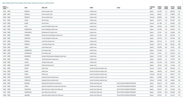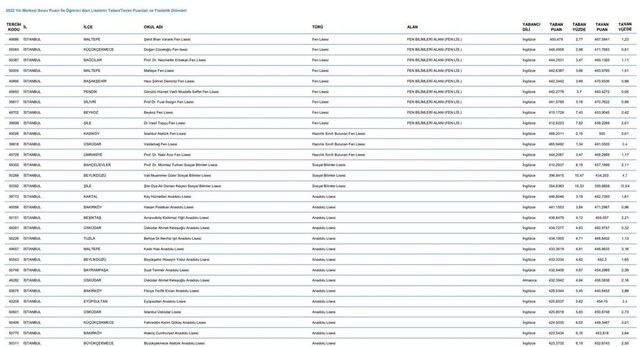 İşte, 2022 Merkezi Sınav Puanı İle Öğrenci Alan Liselerin Taban/Tavan Puanları ve Yüzdelik Dilimleri listesi...