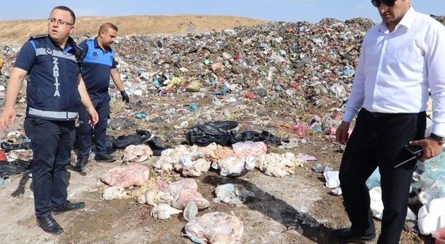Şanlıurfa'nın Haliliye ilçesinde yapılan denetimlerde yaklaşık 500 kilogram bozuk tavuk eti ele geçirildi. (Fotoğraf: AA)