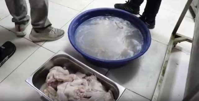 Şanlıurfa'da bir lokantada yapılan denetimde ortaya çıkan görüntü mide bulandırdı. Zabıta ve Tarım ve Orman Müdürlüğü'nün denetiminde lokantada "çamaşır suyuna" batırılmış yaklaşık 500 kilogram bozuk tavuk eti ele geçirildi