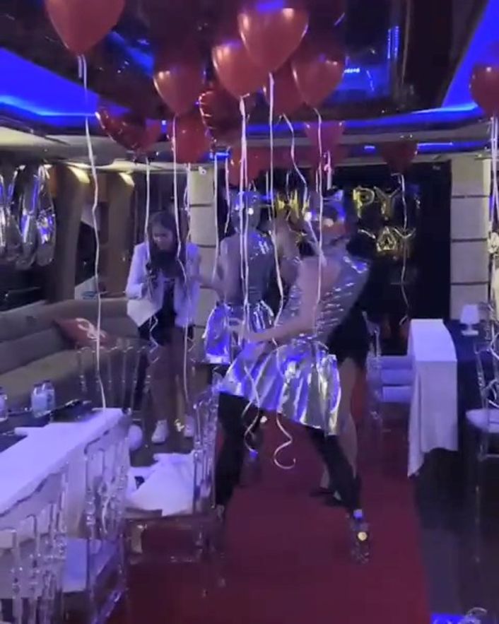 Davetliler için hazırlanan bir diğer sürprizde ise dansçı kadınlar çeşitli figürler sergiledi. Doğum günü partisine katılanların maske ve sosyal mesafe kuralını hiçe saydığı görüldü.