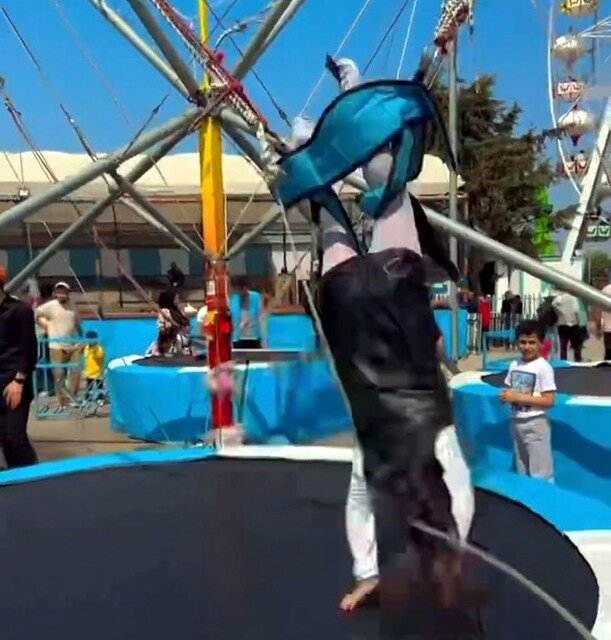 İstanbul Avcılar'da ailesiyle lunaparka giden çocuk trambolin salıncağına bindi. Baba, çocuğunu eğlendirmek için salıncağın bağlı olduğu halatı çekip bırakırken, salıncağın kemeri açıldı. Dakikalarca savrulan çocuk, trambolinin üzerine düştü. Korku dolu anlar güvenlik kamerasıyla kaydedildi.
