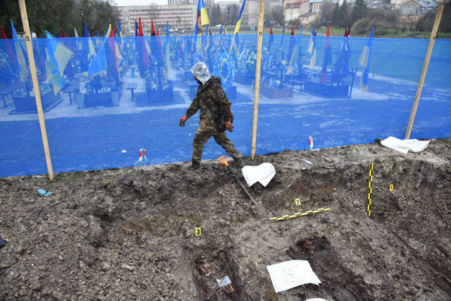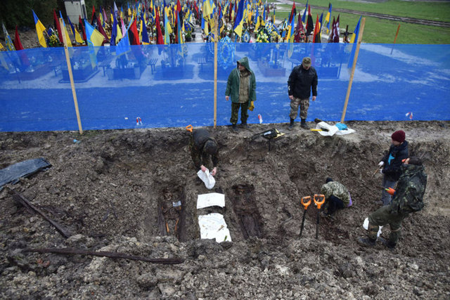 Rusya'nın Ukrayna'ya yönelik 24 Şubat'ta başlattığı saldırılar devam ederken, Ukrayna askerleri Lviv'de 1. Dünya Savaşı'nda hayatını kaybeden askerlerin mezarını buldu