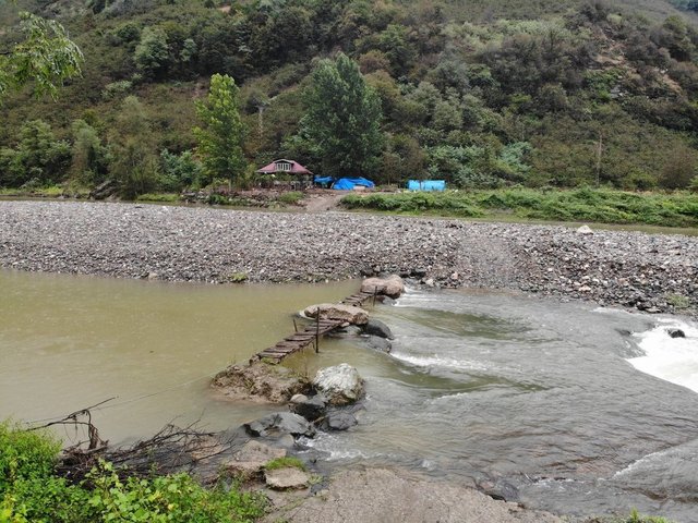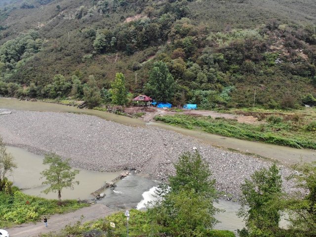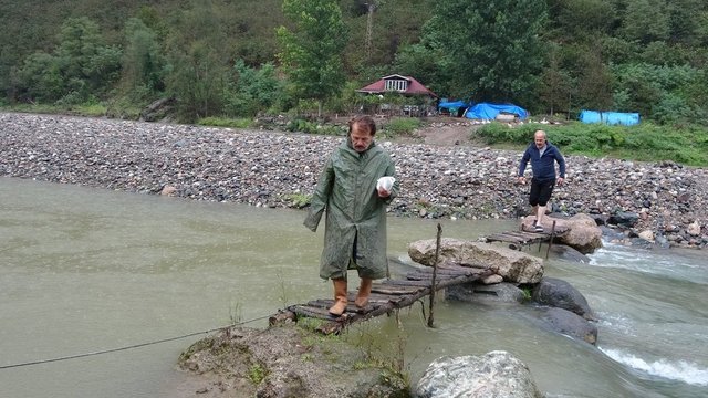 Ordu'nun Altınordu ilçesinde yaşayan Abdullah Türkmen, yolu olmayan ve 10 yıl önce yaptırdığı evine ulaşmak için ırmak içerisinde yerleştirdiği taş ve tahta iskeleleri kullanıyor. Türkmen, macera parkurunu aratmayan yolda su debisinin yükseldiği zaman evine giriş-çıkış yapamadığını, burada kaldığını belirtiyor