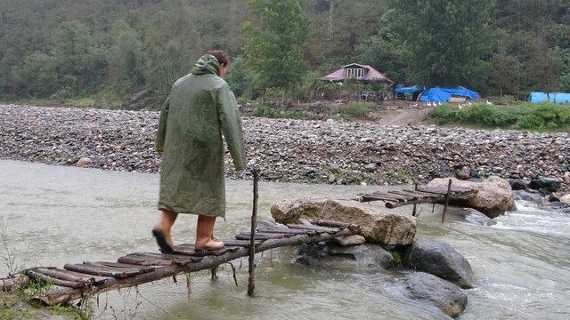 Irmağı geçmek için tahta iskelet kullanan Türkmen 10 yıldır yaşadığı ve yolu olmayan evine gelmek isteyen misafirlerin kimi zaman çekindiğini belirtti.