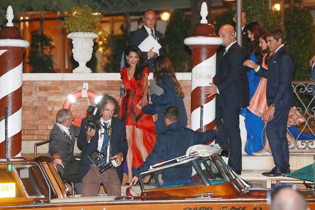Cindy Crawford, Bill Murray, U2'nun solisti Bonove oyuncu Matt Damon gibi ünlülerle birlikte dün öğle saatlerinde Grand Canal Nehri üzerinde gondollarla düğün alayı geçidi, renkli görüntülere sahne oldu. -