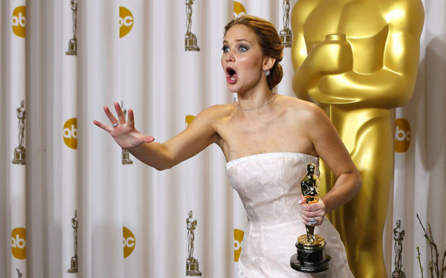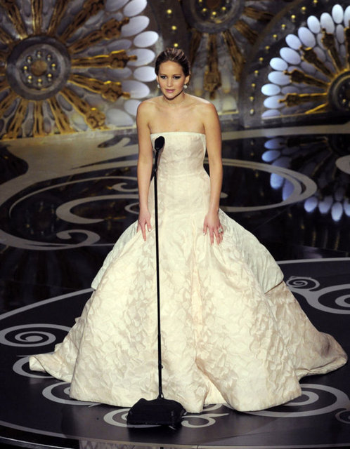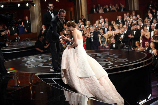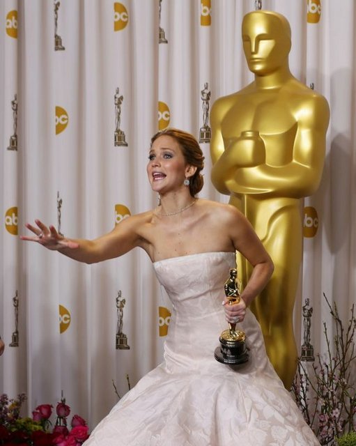 85.'nci Oscar ödülleri sahiplerini buldu.Umut Işığım (Silver Linings Playbook) filmindeki performansıyla En İyi Kadın Oyuncu ödülünü alan Jennifer Lawrence sahneye çıkarken elbisesine takılıp düştü. Hemen kendisini toparlayan güzel oyuncunun düşmesi an be an kameralara yansıdı.