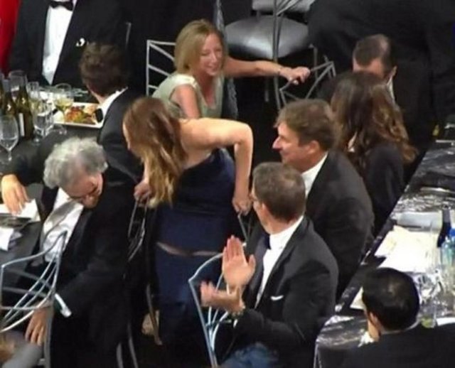 Güzel oyuncu bir ay önce Los Angeles’ta düzenlenen Sinema Oyuncuları Derneği Ödül Töreninde, en iyi kadın oyuncu seçilmiş ve ödülünü almak için yerinden kalktığında elbisesinin alt kısmı düşmüştü.