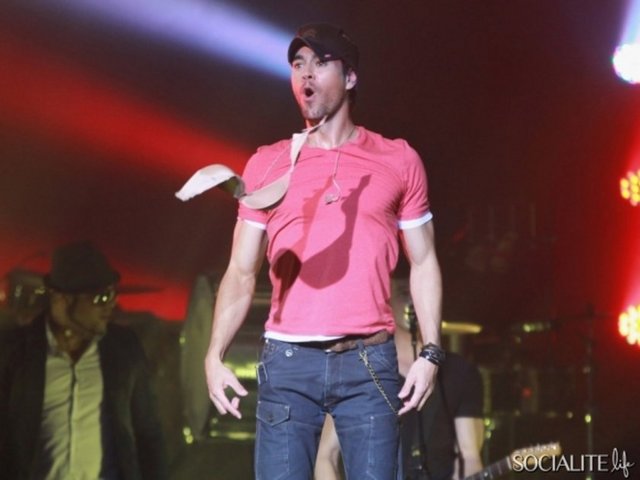 Enrique Iglesias'ın New York'ta The Hero turnesi kapsamında verdiği konserde sahneye yine sütyen attılar
