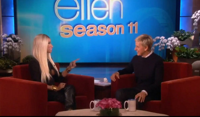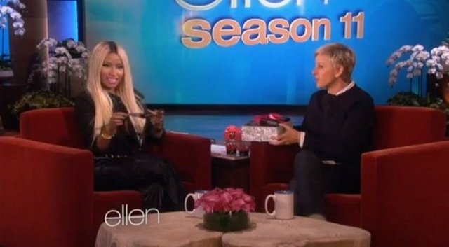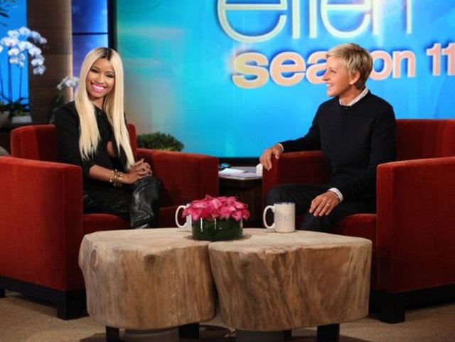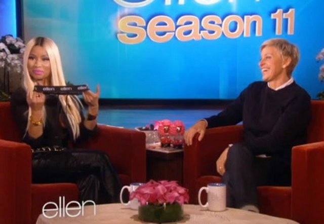 Dün yayınlanan The Ellen DeGeneres Show'a konuk olan Nicki Minaj, programa sütyensiz çıktı.