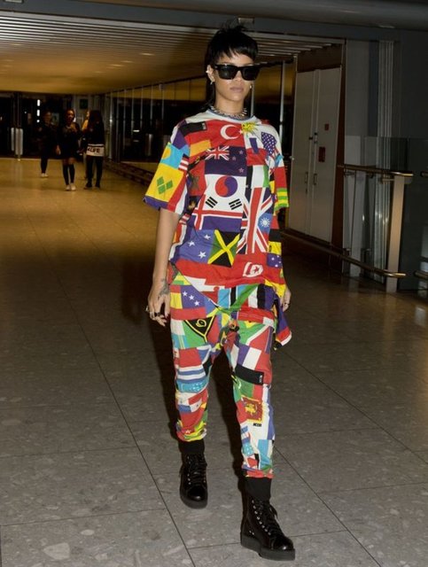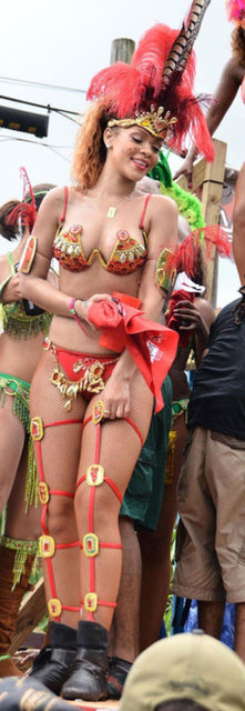 Fourth of July rock festivaline katılan Rihanna ilginç bir kıyafet seçti.